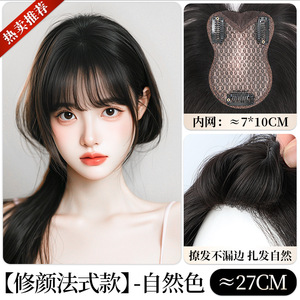 頭頂部の髪の量を増やす女性用の薄いウィッグ、ふわふわの本物の髪、高頭頂部、目に見えない跡のない8の字前髪ウィッグ