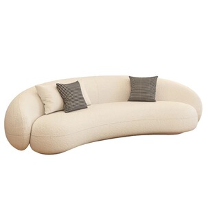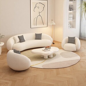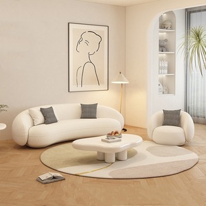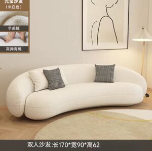 クリームスタイルのファブリックソファ、ビューティーサロンの受付、クリエイティブな小さなアパート、シンプルでモダンなリビングルーム、曲線的な衣料品店、インターネットセレブ