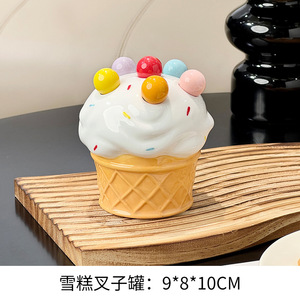 クリエイティブかわいいアイスクリームコーンフルーツフォークセット家庭用ステンレス鋼デザートフォークハイエンド保存瓶フルーツフォークボックス