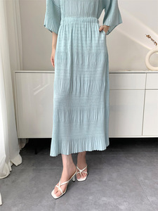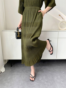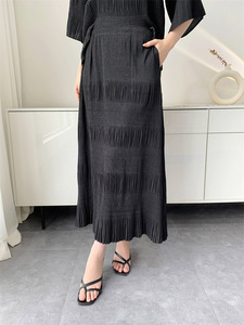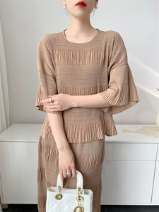 三宅風のハイエンドのしわのスーツの女性2025夏の新型の上着の半スカートの気質は年齢を減らして快適でカジュアルです。
