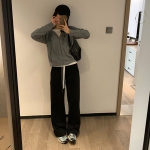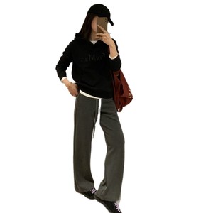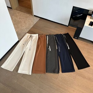 102701 秋冬新作女性用ワイドレッグカジュアルパンツ、ゆったり、シンプル、ドレープフロアレングスパンツ、ウエストゴムストレートパンツ
