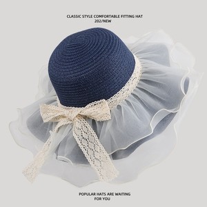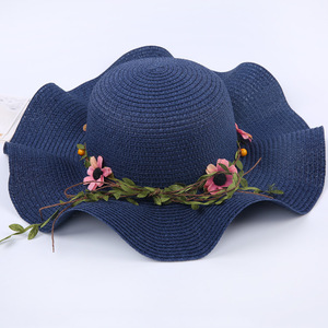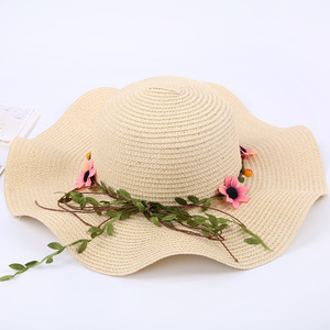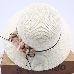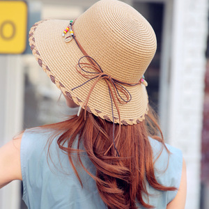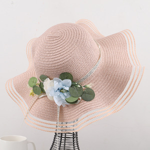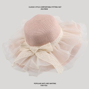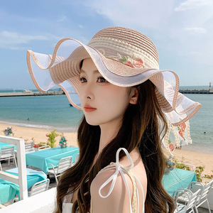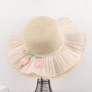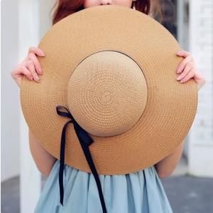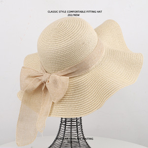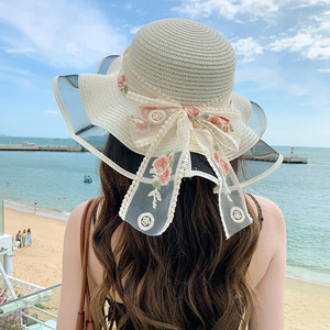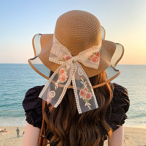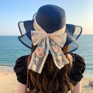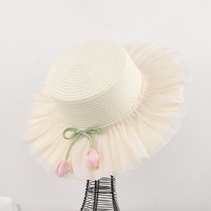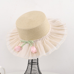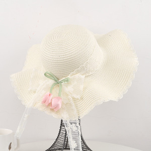 チューリップ甘いリボンサンシェード麦わら帽子女性のファッショナブルな気質大きなつばの日よけ帽子屋外日焼け止め帽子