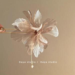 古代風の花のヘッドドレス〜超妖精のレトロなシフォンフラワーパールタッセルU字型ヘアピン気質新しい中国風のヘアピン