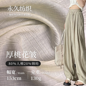 130 グラム厚い桃の花しわ模造リネン生地細かいしわテクスチャしわ生地ファッションスカート山本パンツシャツ生地