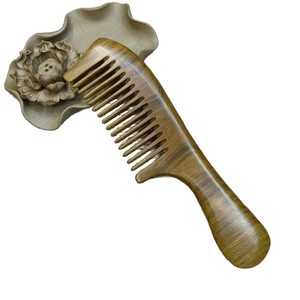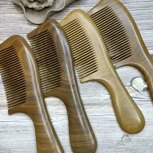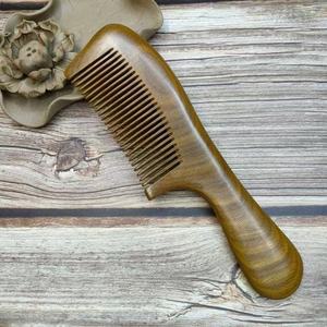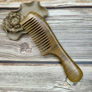 天然绿檀木梳子整木宽齿长檀香木卷发顺发家用按摩梳卷发神器