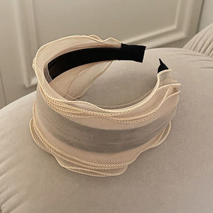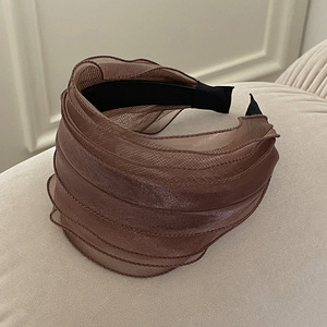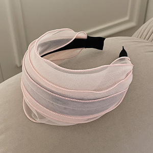 春夏の網の紗の広い縁のカチューシャの女性2025新型のカチューシャの高級感の洋風のファッションの髪飾りの日常の外でつけます。