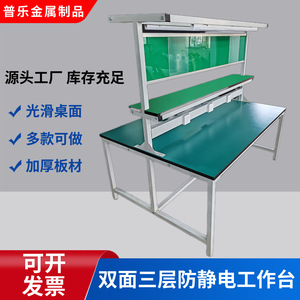 新しい厚みのある三層両面帯電防止作業台、ライト付き組立ライン、研究室ワークショップ、帯電防止操作台
