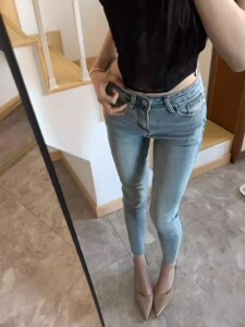 韓国の新しい夏スタイルのレトロなウォッシュブルージーンズ、シンプルな気質、多用途、ハイウエスト、スリムフィット、女性用タイトフィットパンツ