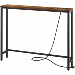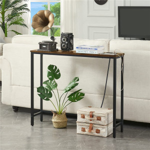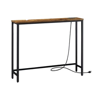 コンソールテーブル 2つのコンセントと2つのUSBポート付き 金属フレームとX字型デザイン リビングルームの廊下が狭い