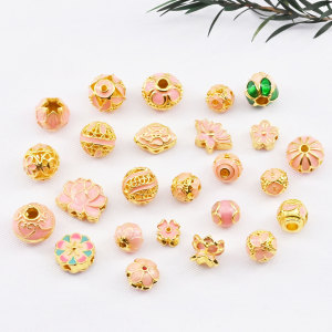 18K ゴールドフィルド カラー保持七宝焼きオイルドリップ銅金メッキスペーサービーズアクセサリー 8mm オイルドリップトランスファービーズエナメルカラーアクセサリー