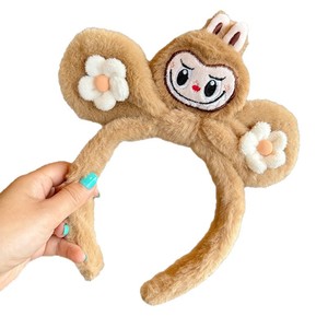 漫画ラブブ女性ヘッドバンドヘアアクセサリー韓国語版かわいい花柄ウサギ耳ヘッドバンド洗顔や外出用ぬいぐるみ