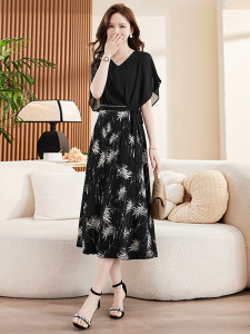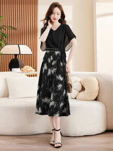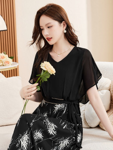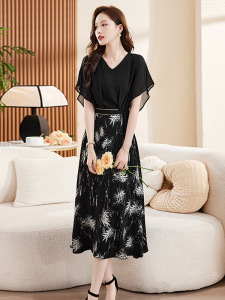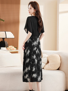 ブラックのレースアップドレス、エレガントで年齢を軽減するマルベリーシルクスカート、デイリーカジュアル、快適で通気性のあるVネックロングスカート