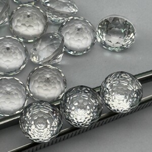 卸売ナチュラルホワイトクリスタルリングラウンドミレニアムローズカットファセット尖底ルースストーンピュアボディジュエリー半完成品