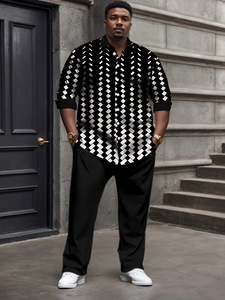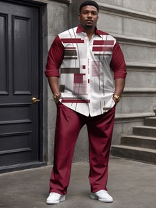 国境を越えた貿易ホットセールメンズ春と秋のファッションシングルブレストシャツとズボンのツーピースセット3Dプリント長袖シャツスーツ