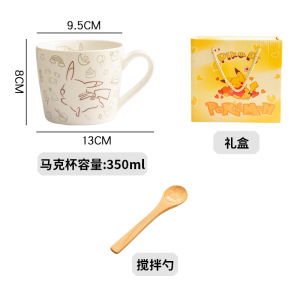 ピカチュウウォーターカップシンプルなセラミックマグ男の子クリエイティブカップスプーン付きホームオートミール朝食ミルクカップ