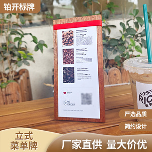 黒檀木製の縦型メニュー立て、卓上ディスプレイ、看板、木製スタンド、ディスプレイスタンド、テーブルサイン、古典風