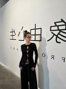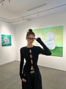 辣妹风镂空破洞长袖T恤女夏季新款打底衫内搭独特修身显瘦短上衣