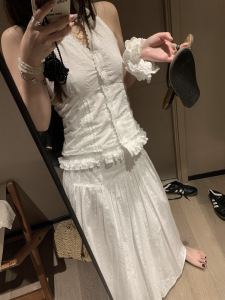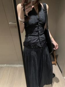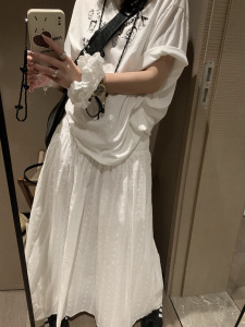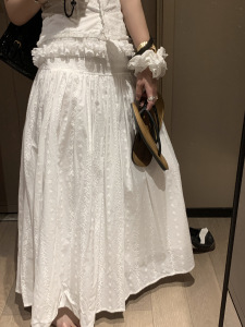 ウォッシュドコットン刺繍パッチワークフレンチスカート女性用2025夏ハイウエストロングプリーツスカート