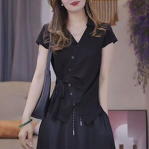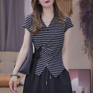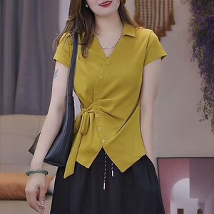 代発ディザトーンの爆発金2025夏の新型ファッションはウエストを締めて洋気百合減齢半袖tシャツを持っている