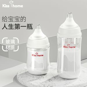 有名ブランドと同じスタイルの広径哺乳瓶、シリコン乳首、新生児用抗疝痛哺乳瓶に適した高ホウケイ酸ガラス哺乳瓶