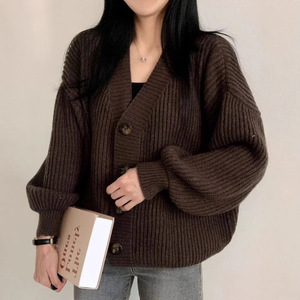 クロスボーダー 2025 新しい多用途セータージャケットルーズビッグバージョン怠惰なランタンスリーブ暖かい厚いニットカーディガン外国貿易