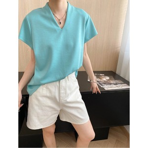 司南至簡主義デザイナーのシンプルで高級な水滴vネック気質のゆったりした半袖tシャツSN7648