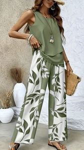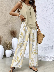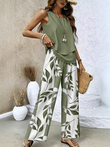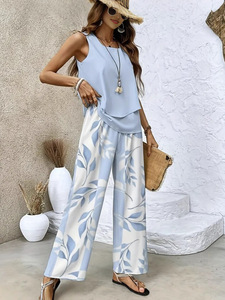 2025年ヨーロッパとアメリカのクロスボーダーレディースノースリーブトップスとパンツプリントスーツ多用途