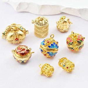 古代金滴油カボチャボックス滴下法螺ガウボックス中空サシェペンダント DIY 編まれたサシェ丸薬
