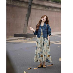 ソースファクトリー フレンチハイセンス 超格好良い 大きいサイズ フレンチストライプ シャツワンピース ウエスト痩せ&気質ロングスカート