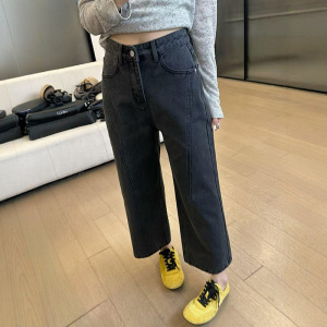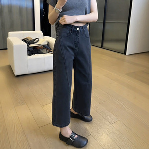 女性用スモークグレージーンズ夏新作大きいサイズ洋ナシ体型小柄ルーズシガレットパンツ9点ストレートパンツ