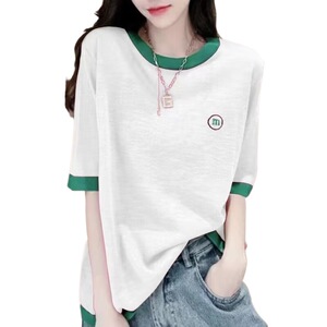 女性のための半袖竹綿 Tシャツ 2025 春夏新作薄い大きいサイズルーズカジュアルスプライシング半袖トップ女性のための