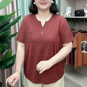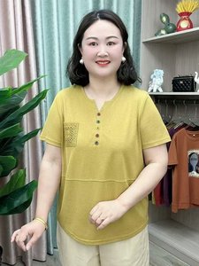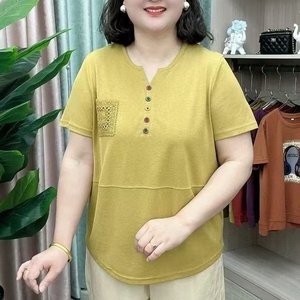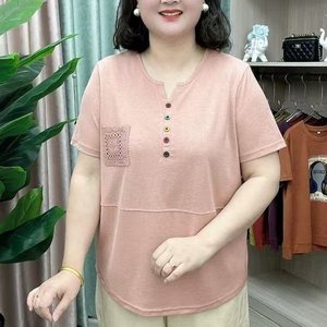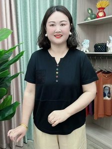 ドロップシッピングライブブロードキャストホットスタイル2025夏の新しいファッショナブルなスタイルの年齢を減らす痩身ルーズカラーボタン半袖Tシャツ