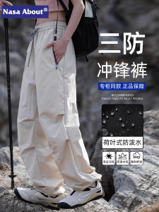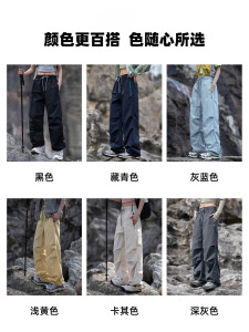 NASA潮牌突撃ズボン男夏薄型アウトドアスポーツストレート傘兵ズボンゆるい広脚氷糸カジュアルズボン