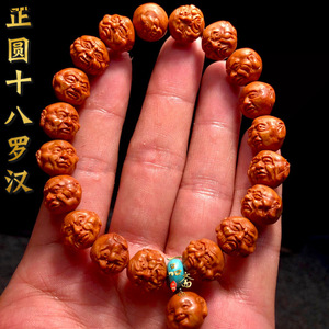 新製品 小粒十八羅漢ブレスレット メンズ プレイピーチコア ドラゴンパターン クルミコア彫刻 十八羅漢オリーブコア
