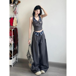 女性用高級ウェアスーツ、夏の新作ノースリーブホルターネックピュアディザイアホットガールスリミングパンツ2点セットAmazon