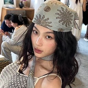MMFISH ファッショナブルなストリートレトロ海風ひまわりプリントスクエアスカーフネックハイエンドニッチスカーフ 25U238