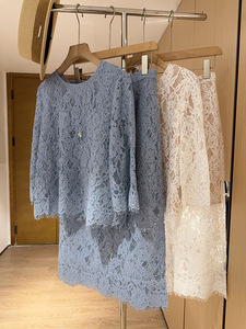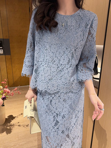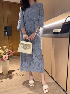 エレガントでロマンチック〜Bai Fumeiの中空レースラウンドネックトップ+スカートツーピーススーツドロップシッピング