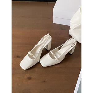 ニッチなデザインのハイヒール、春夏の新作レトロシンプルカジュアルスクエアトゥ脚長サンダル