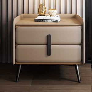 ベッドサイドキャビネットハイエンドライト高級シンプルな無垢材家庭用レザーモダンな寝室の収納キャビネット収納と取り付けベッドサイドキャビネット