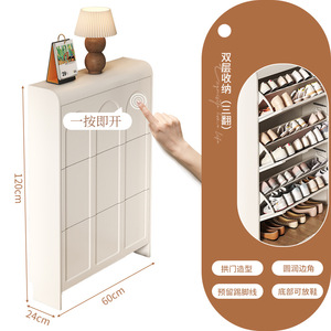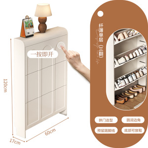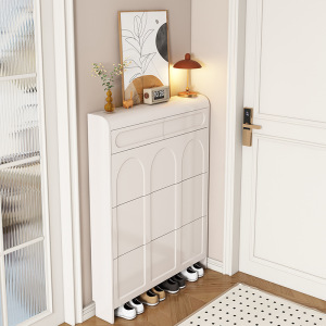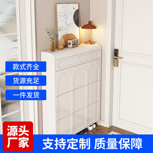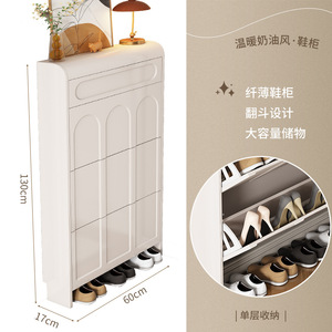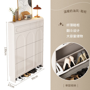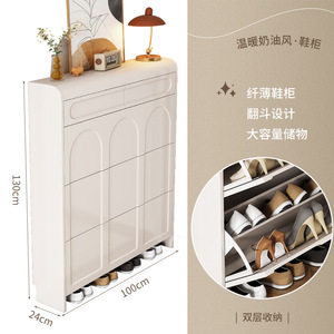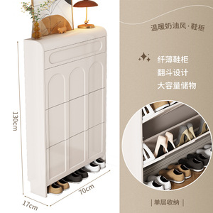 クリーム系超薄型シューズキャビネット、玄関ドロップタイプ玄関キャビネット、一体型大容量シンプル収納シューズラック