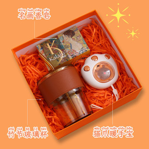 43. 竹カップ + 有名な絵画石鹸 + ハンドウォーマー + オレンジのギフトボックス