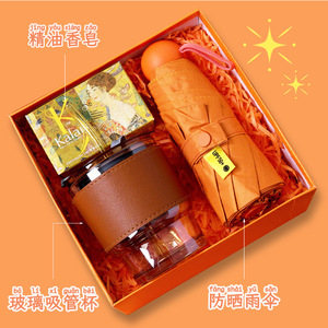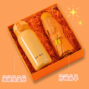 1. 魔法瓶カップ + 傘 + オレンジ色のギフトバッグギフトボックス