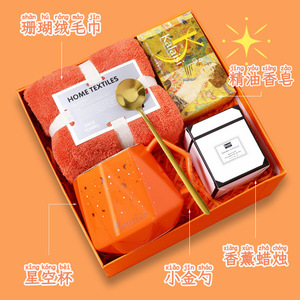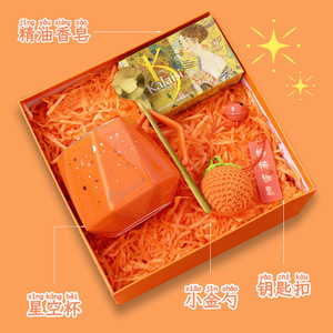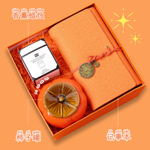 32. 香りのキャンドル + 柿瓶 + メモ帳 + オレンジ色のギフトバッグ ギフトボックス