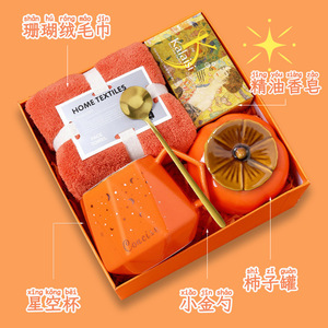 23. 竹カップ + 有名な絵画石鹸 + タオル + 柿瓶 + オレンジギフトバッグギフトボックス