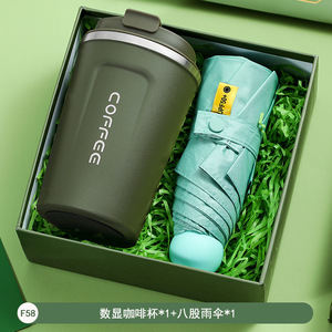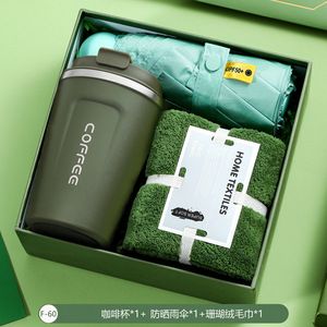 9. コーヒーカップ + コーラルベルベットタオル + 傘 + グリーンギフトバッグギフトボックス