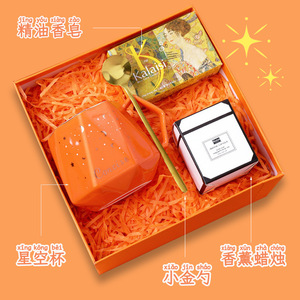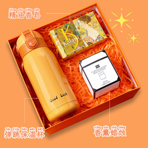 33. 有名な絵画石鹸 + 香りのキャンドル + 魔法瓶カップ + オレンジ色のギフトバッグギフトボックス