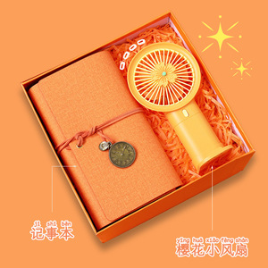 8. メモ帳 + 小さな扇風機 + オレンジ色のギフトバッグ ギフトボックス
