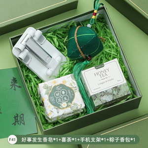 4. 良いことが起こる石鹸 + 香りのお茶 + 携帯電話ホルダー + Zongzi 小袋 + グリーン ギフトバッグ ギフトボックス