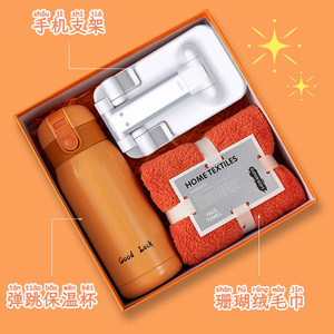 30. 携帯電話ホルダー + 魔法瓶カップ + タオル + オレンジ色のギフトバッグ ギフトボックス
