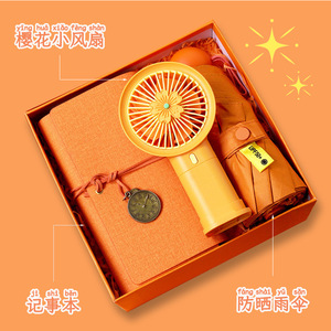 7.小型ファン+傘+メモ帳+オレンジギフトバッグギフトボックス